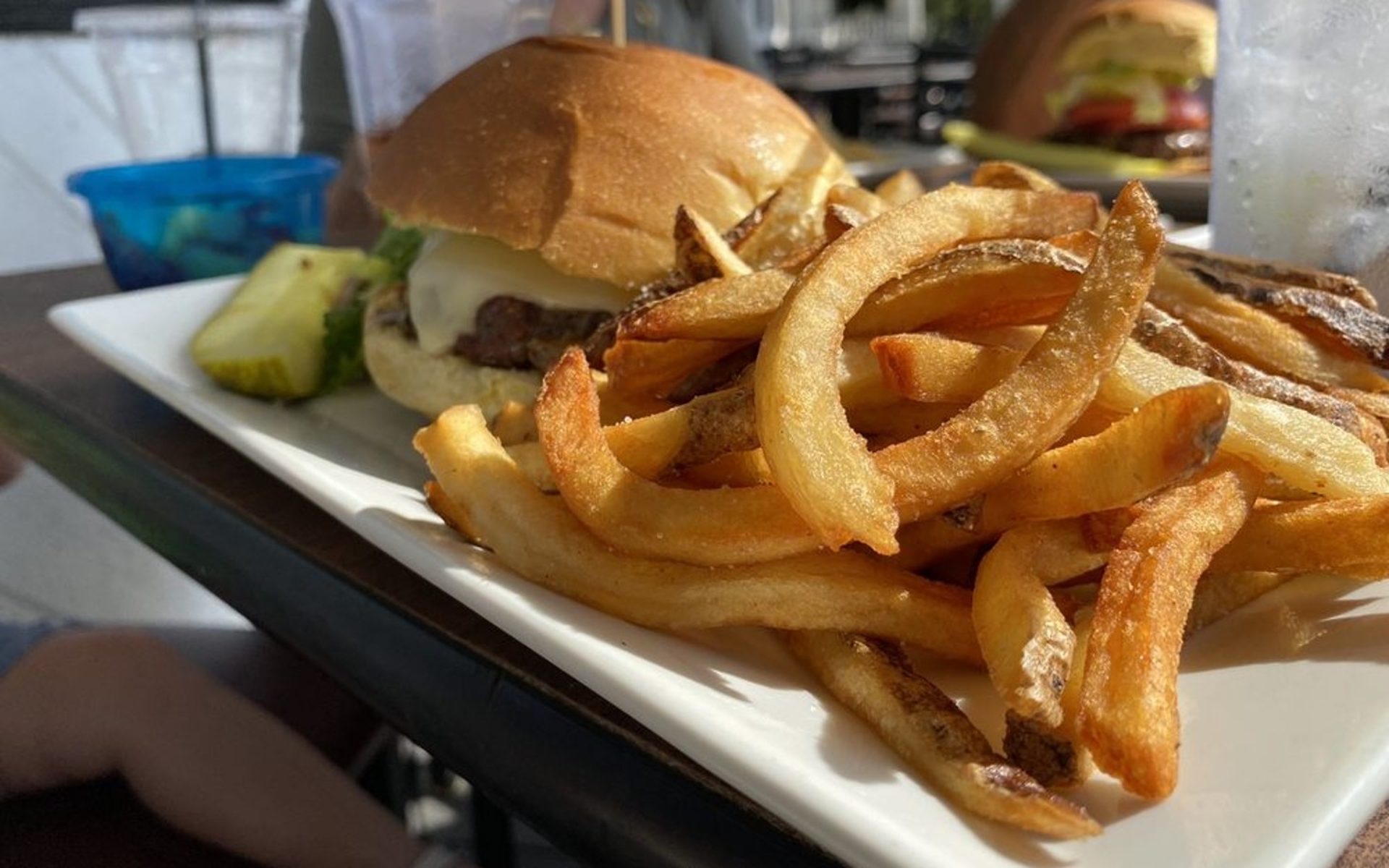 The Palm is always good. Great food, service, and atmosphere. So thankful to find it open for lunch on Father's Day. The house made chips are worth every calorie. Lighter and not greasy. Love them!!!!! Burger in lettuce wrap was amazing. I love their salmon and smashed potatoes with green beans and lemon hollandaise sauce.